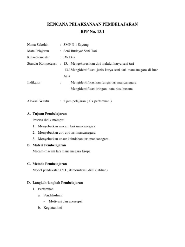 Contoh Rpp Seni Budaya Sd : Contoh Rpp Sd 1 Lembar Idsch Id / • siswa dapat melakukan pengamatan model dan .